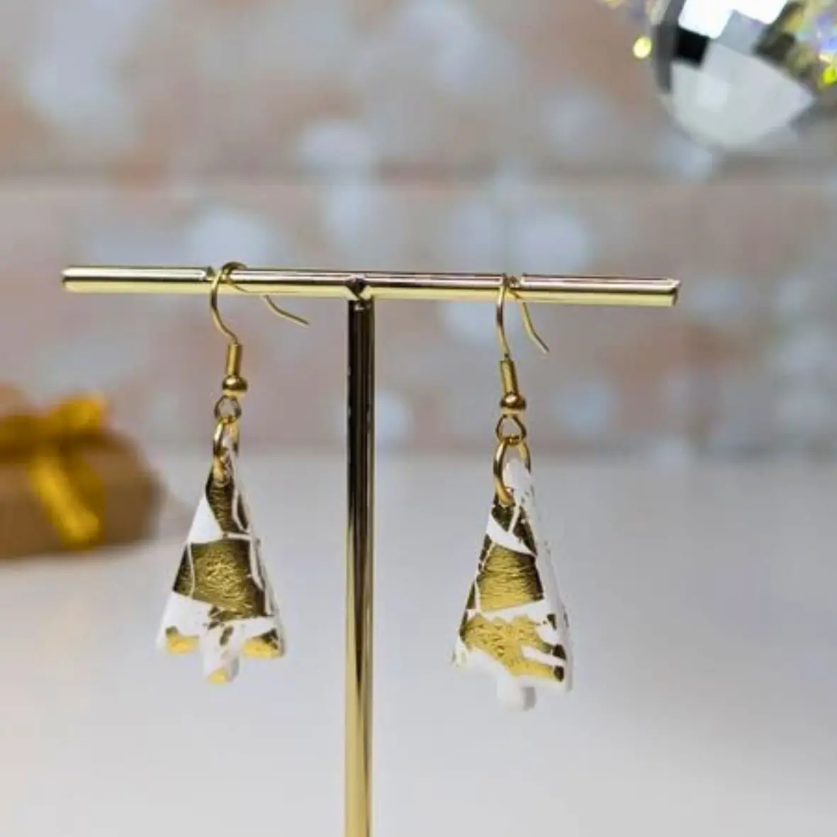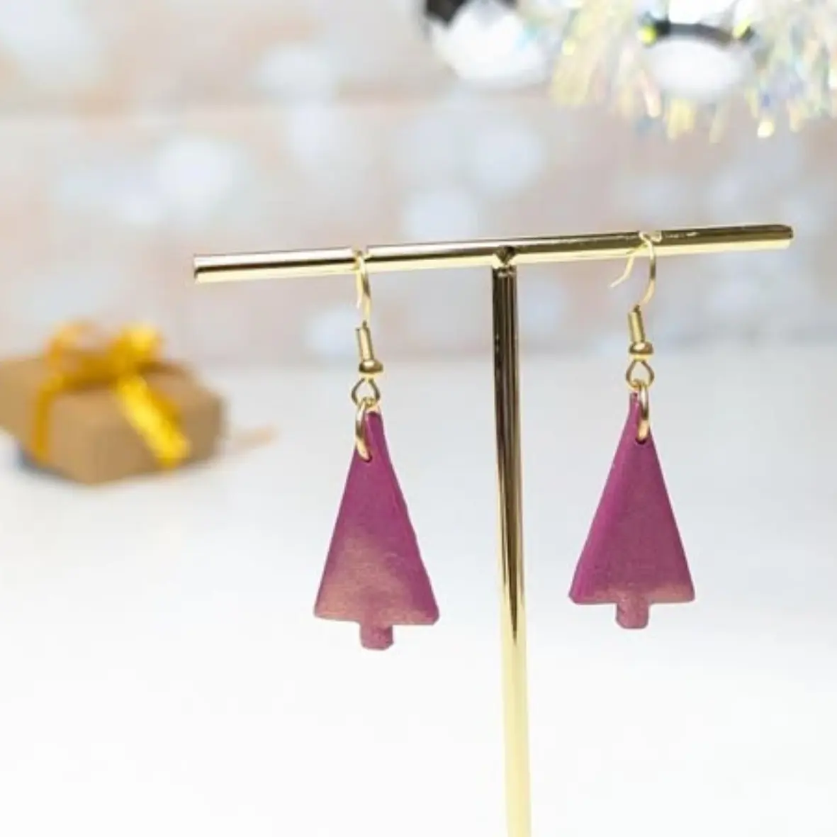Boucles d’oreilles sapins de Noël : un design minimaliste qui illumine ton visage. Fait main, plusieurs couleurs. L’accessoire craquant des fêtes !
